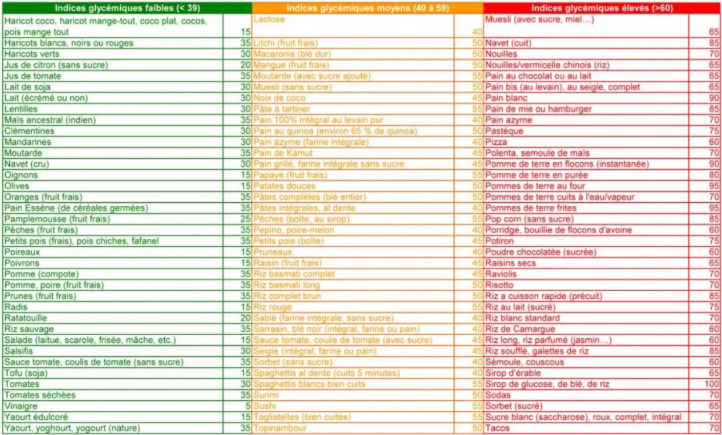 tableau d'indice glycémique des aliments
